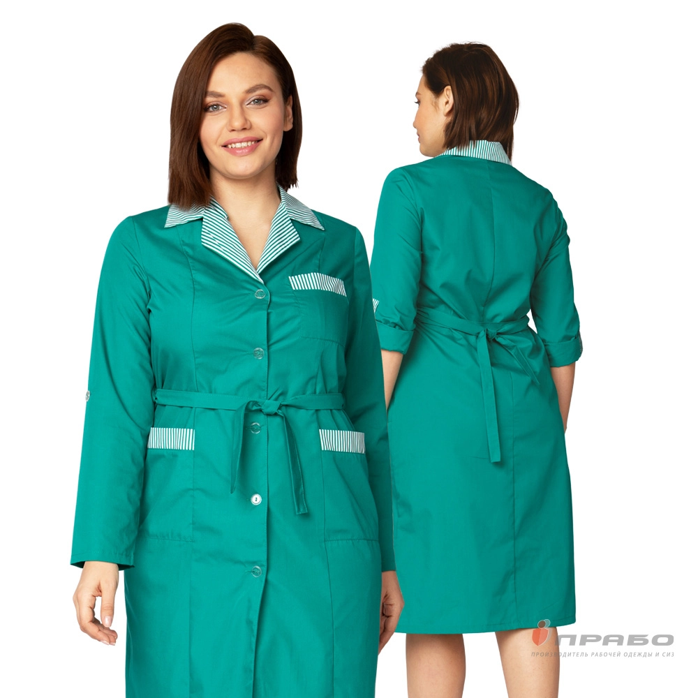 Халат женский "Хозяюшка" зелёный/полоска